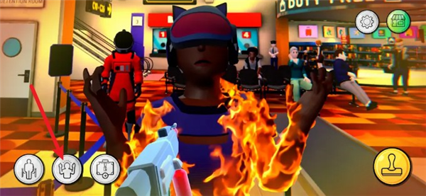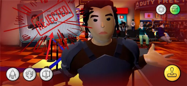 3、对于比较危险的乘客可以用武器来让他举起双手,如果觉得无误就能点击右下角进行盖章,让其通过。