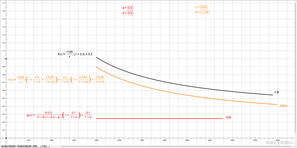 收益-属性 图像 其中a表示无视防御与穿透率,b表示增伤区加值,c表示暴击率,d表示暴击伤害