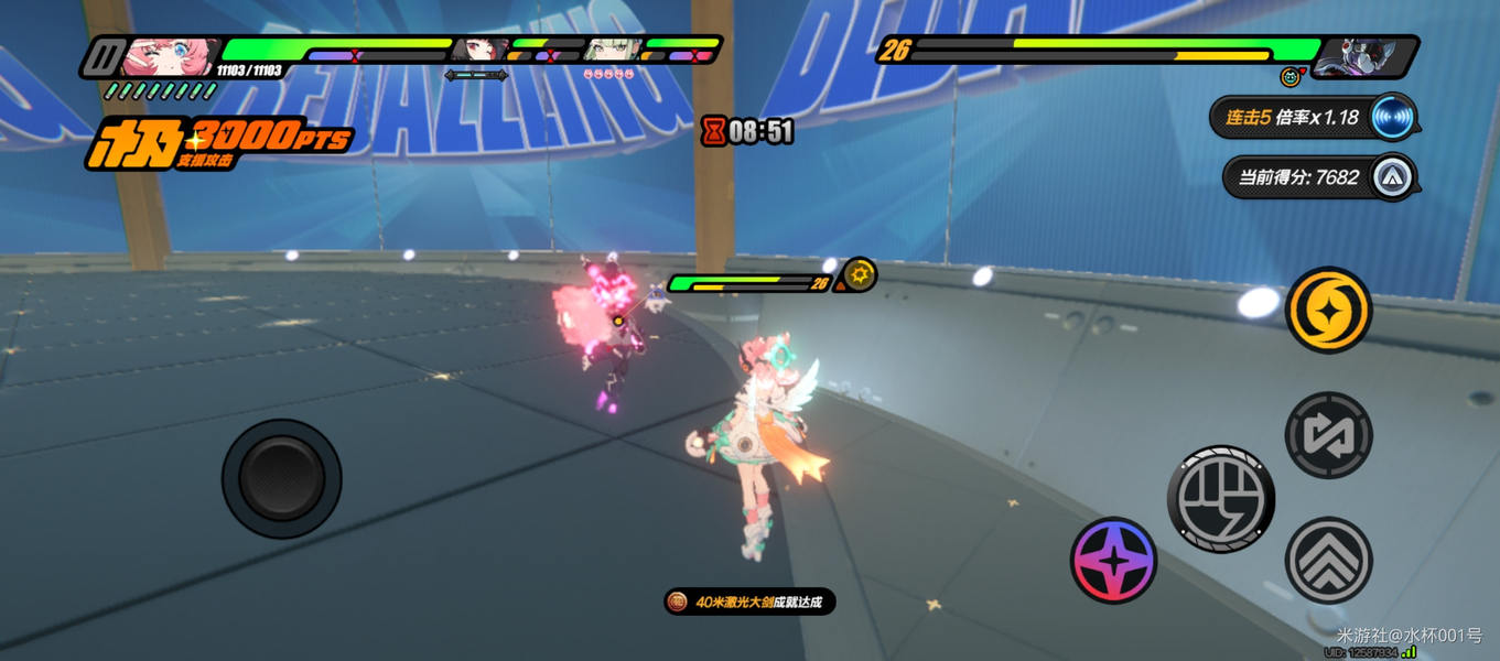 黑爱芮放出特殊技时,会出现文字提示,并且伴随覆盖周身的“紫光”,看准时机,当它十分强烈的闪烁一下时,立刻点击闪避。