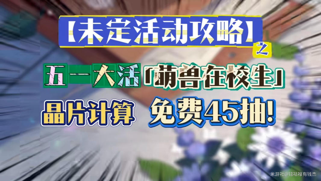 五一爽玩!《未定事件簿》五一期间上线了「萌兽在校生」限时活动,活动周期完成各类任务与签到,预计可免费获取约45抽的晶片及其他资源。以下为该活动期间各渠道晶片产出的具体计算与获取方式说明,帮助各位玩家合理分配活动期间的体力与资源投入。