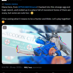 怪猎官号被攻破!卡普空旗下科幻新作《Pragmata》中的虚拟角色戴安娜近日在社交平台上展开了一系列有组织的“入侵”活动。在连续控制《Pragmata》与《生化危机》官方账号之后,其最新目标是《怪物猎人:荒野》。已经成功侵入!