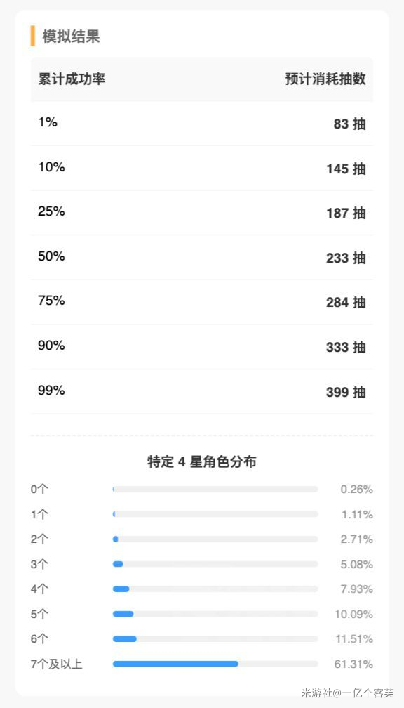 几个五星一个四星呢?原神中五星角色的出货期望约为90抽,特定四星角色的平均获取间隔则在34抽左右。这边做了进一步推算,从概率角度分析了不同五星抽取目标下同池四星角色命座的分布情况。虽然常见估算认为零命五星对应二命四星、二命对应满命,但实际抽卡中仍存在不小偏差空间。