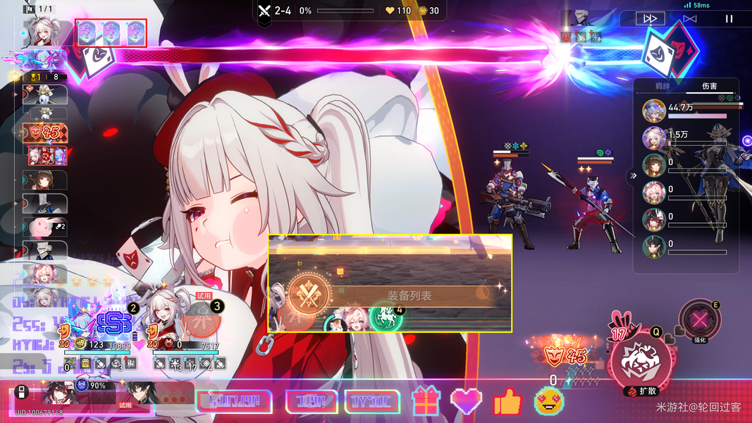 同样推荐在货币战争里面完成,难度紫金就可以。欢愉角色只带火花和银狼LV999,前台火花、银狼LV999、风堇(保生存,不带也可以)。(多带没关系)后台带个花火,最好给银狼LV999做个永动机。最好跟下图一样的摆法,银狼星级不重要。(灵砂、龙丹、风堇都凑数的)