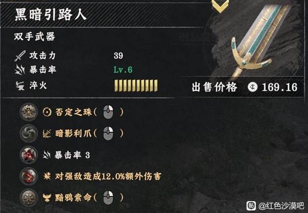 武器推荐使用自带3爆率的双手剑,齿轮搭配如图所示。三个冲锋斩特效珠可以补伤害和打硬直,6爆率配合项链的8爆率就差不多到爆率上限,增伤齿轮看个人喜欢带一个就行,我一般喜欢用双手剑打boss就带的强敌增伤。