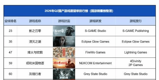 腾讯北极光工作室自研的PvEvP猎杀夺宝FPS新作《灰境行者》,在最新公布的2026年Q2国产游戏Steam愿望单排行榜中位列第5名,全球愿望单排名位居第60位,展现出强劲的海内外市场期待值。