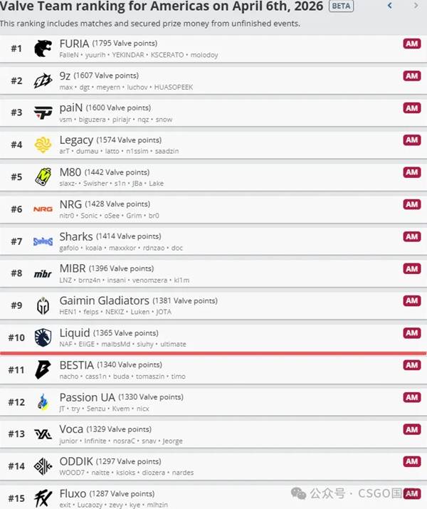 美洲区VRS排名