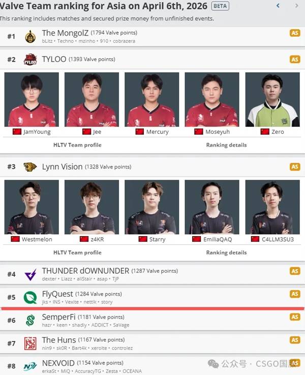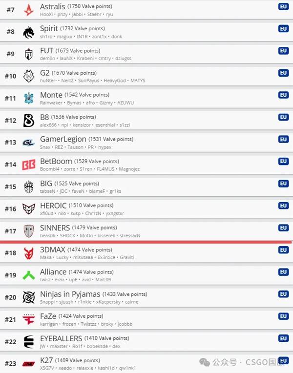 欧洲区VRS排名