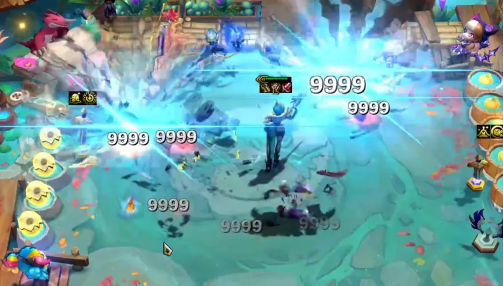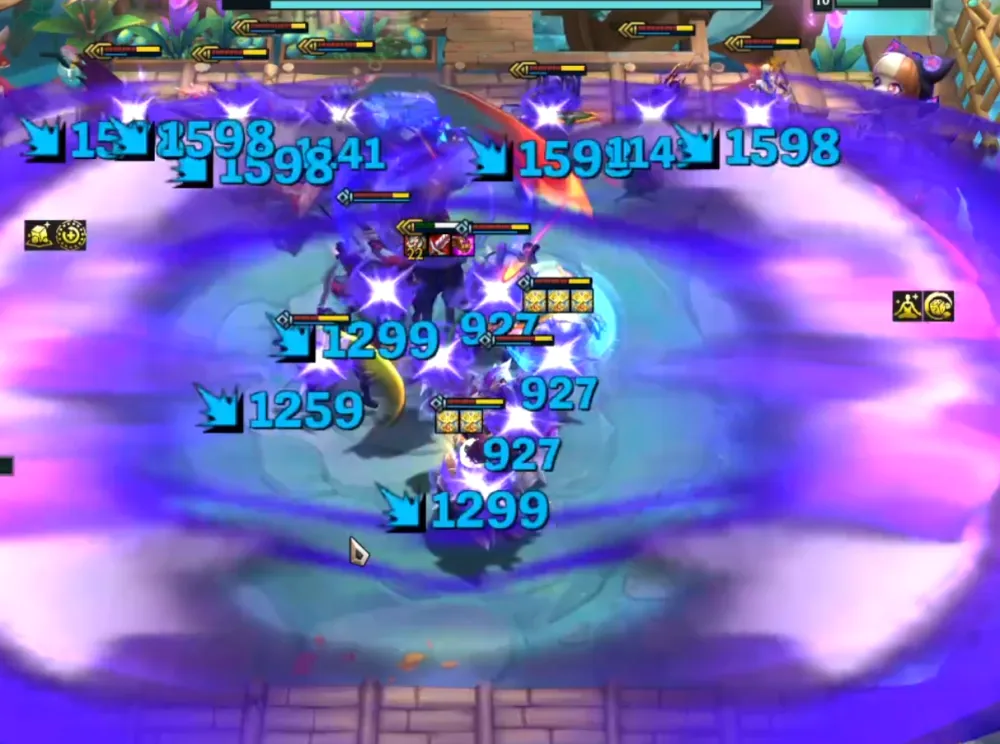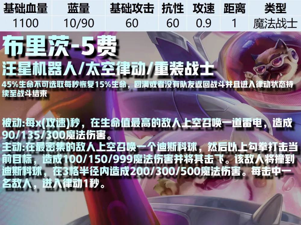 前面把敌人丢上去都是假象,实际上是触发被动的时候,会把对手的小小英雄给勾过来,然后直接砸死对手的所有棋子。布里茨是一个类似瑟提的魔法战士,被动是电击,主动是把人锤走造成范围魔法伤害。和瑟提一样要先卖血触发独立羁绊,伤害才会足够高。