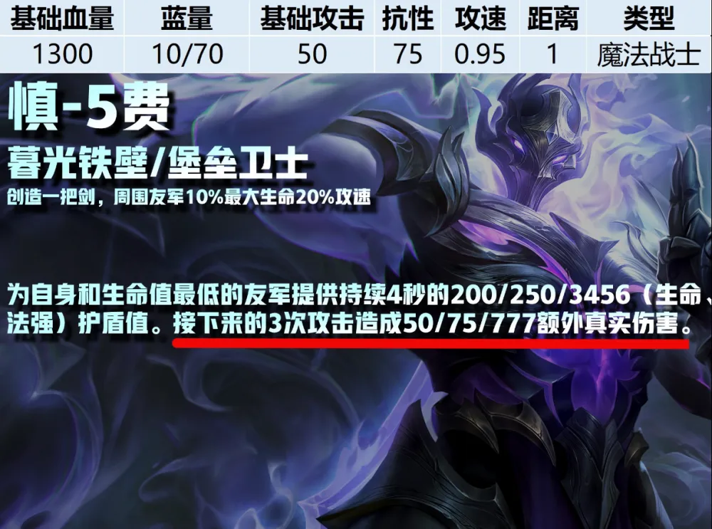 技能是给护盾之后普攻造成真实伤害。五费三星是全屏的光波,还是非常帅的。记得给法爆,因为数值也没有特别高。