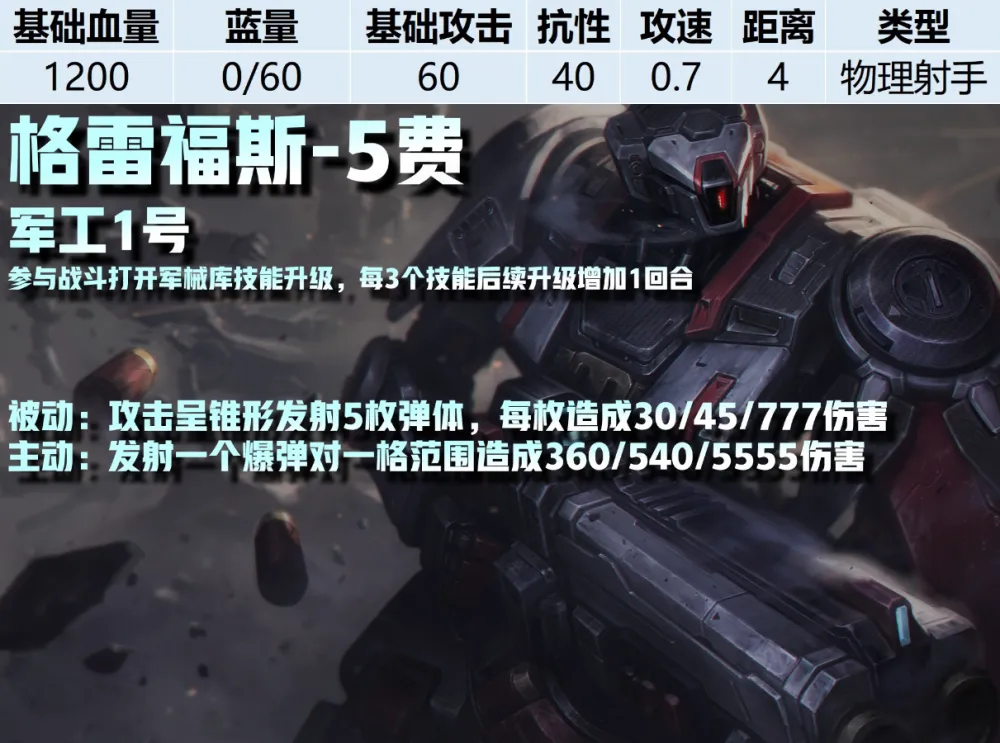 技能可以烬行无限升级。技能非常的简单粗暴:普攻是五发分裂,技能是一发爆弹。三星五费是召唤一堆小男枪,来得早、养得久,会让你知道什么叫数值魅力。