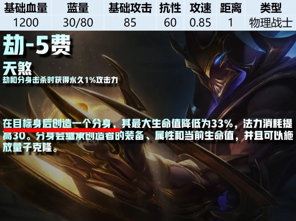 五费三星召唤一堆影分身直接秒杀。劫的技能是召唤一个分身,分身有装备并且也可以放技能。S2玩过光劫的朋友们对劫应该都不陌生。劫是一张隐藏五费卡,必需3-2的金色强化、四阶段才可以拿到,可以说是看见必玩。