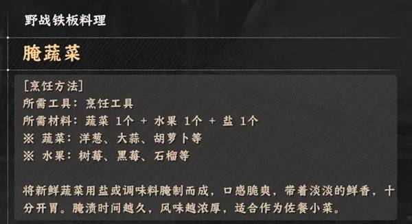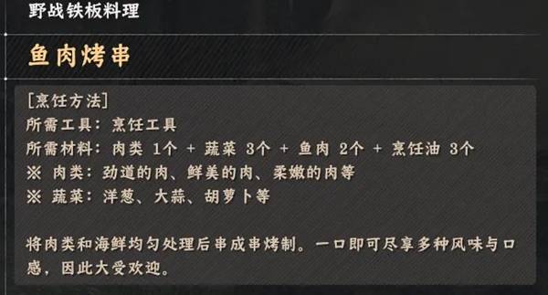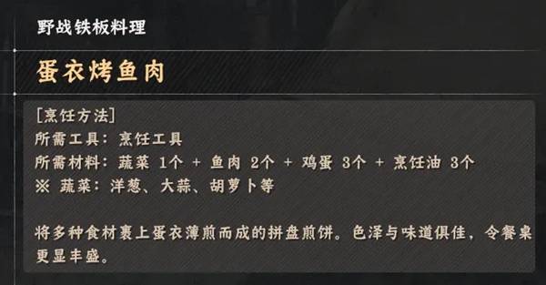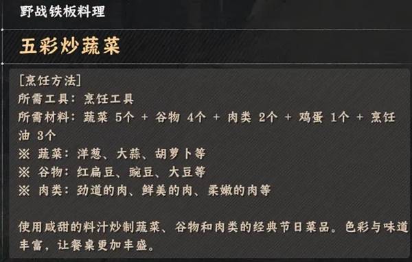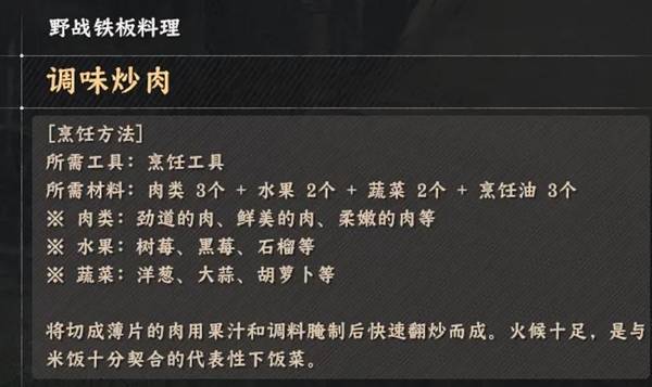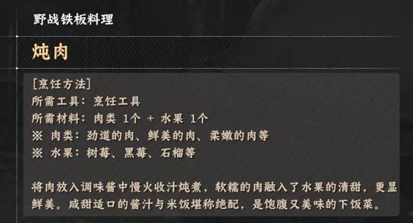 《红色沙漠》烹饪玩法野战铁板类料理配方全收集
