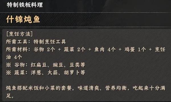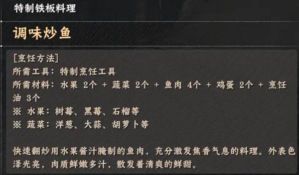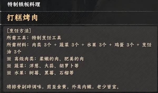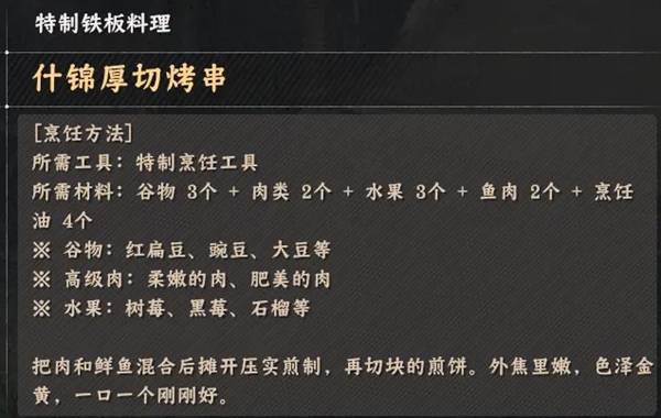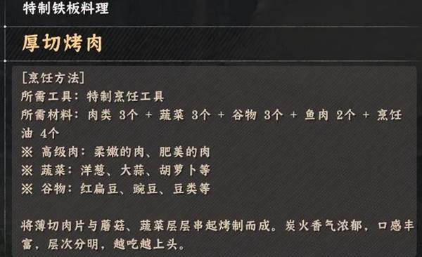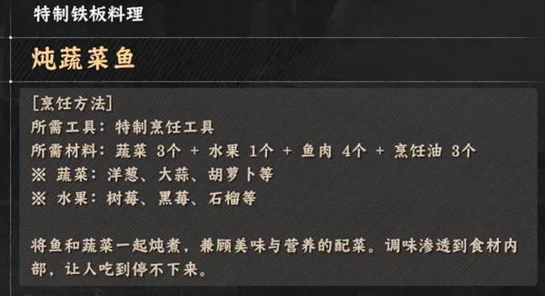 《红色沙漠》烹饪玩法特制铁板料理配方全收集