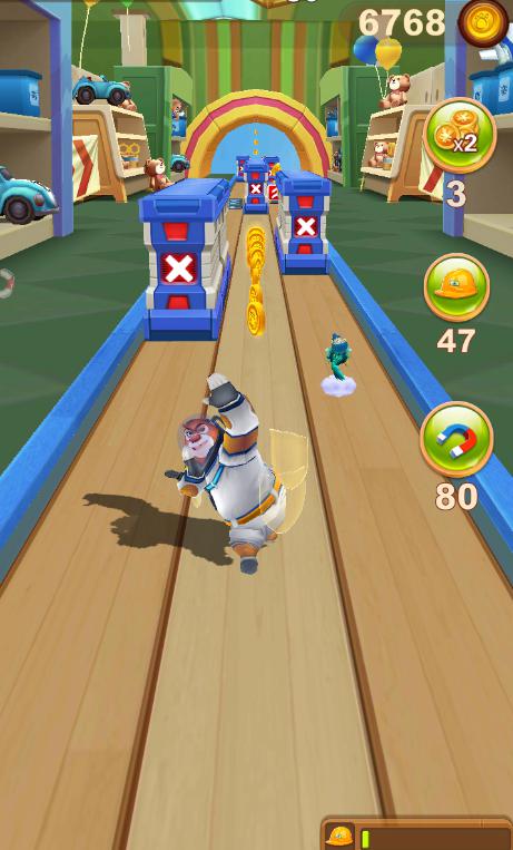 所谓的特殊跑道就是与光头强之间的决战,在《熊出没之熊大快跑》中光头强是当之无愧的BOSS,会使用炸弹来攻击小伙伴们,光头强扔出的炸弹分为两种第一种是红色的,第二种则是蓝色的,其中红色的会对小伙伴们造成伤害,蓝色的则会对光头强造成伤害,所以小伙伴们需要把蓝色的炸弹踢回去,等光头强受伤到一定次数后小伙伴们就可以战胜光头强了!