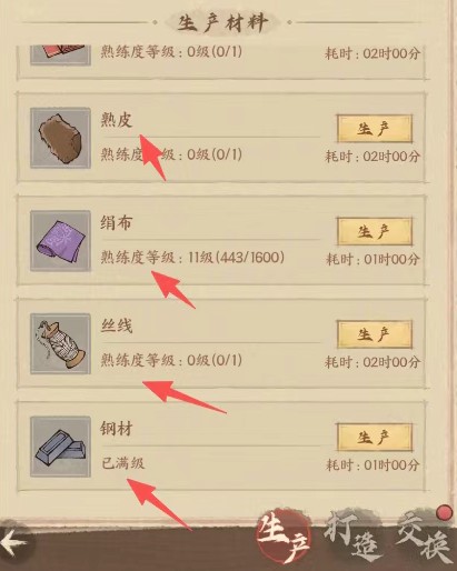 还有一个注意事项比较常见 这里还是说一下 估计还是有人不知道的 材料生产的话建议只 生产一个材料 等级高了出红色材料的概率也更高 好多人喜欢所有材料都生产 进度特别慢 材料10级以上才有百分之1的概率出红。