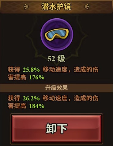 2.魔眼1带潜水护镜(移速),需要50级左右,移速超过22.1即可。