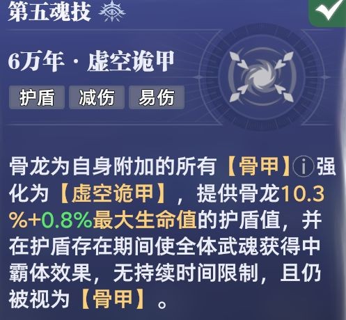 5被动「虚空诡甲」→骨甲再升级,全队中霸体+护盾按自身最大生命算