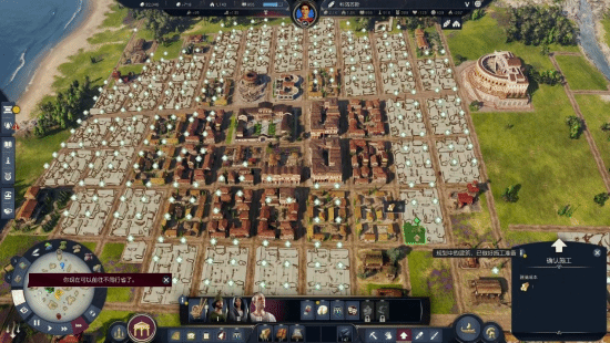 《纪元117》首次在系列中实现了建筑斜向摆放与环形覆盖设计。道路可以沿着地形自然弯曲,建筑的影响力辐射不再是死板的方格,而是更符合真实物理空间的圆环。你可以轻松建造出凯旋门前的斜向林荫道、圆形竞技场周围的环状商业区,让罗马城市那种恢弘而自由的布局成为现实。