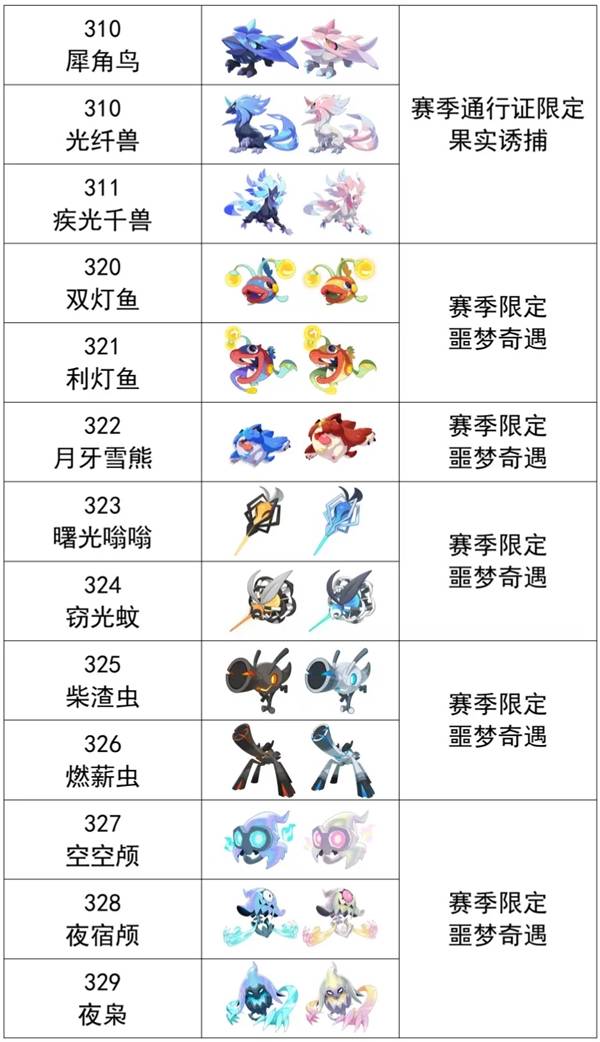 普通野生精灵在本赛季出现异色外观,赛季结束后该外观不再出现