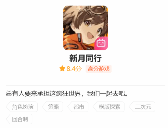《新月同行》是一款由烛薪网络开发的回合制二次元游戏。最初于2024年10月24日正式上线,在B站评分高达8.4。