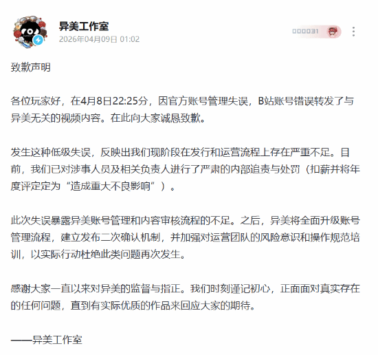 事发后工作室紧急删帖并致歉,称系运营人员个人失误、账号管理疏漏,对涉事员工处以扣薪、调整年终评级。但处罚过轻、回应敷衍未能平息怒火,大量玩家涌入官方评论区抵制。