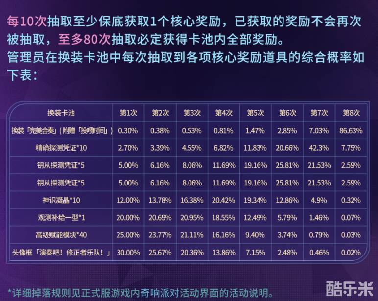 4周年登录就送移转之辉3000和限时精确探测凭证10个让你直接白嫖基础探测次数,使你快速的抽取到自己想要的道具。还可以通过完成日常任务,版本活动,览宙合版本任务、活跃度奖励等内容额外获取转移之辉。抽取建议必拿优先级,不灭王权·荷鲁斯完美合奏>主界面场景少女欢奏之夜。