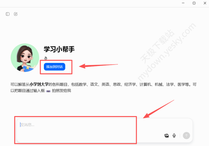 4、点击想要使用的智能体,即可开启对话,还可以点击【添加到对话】。