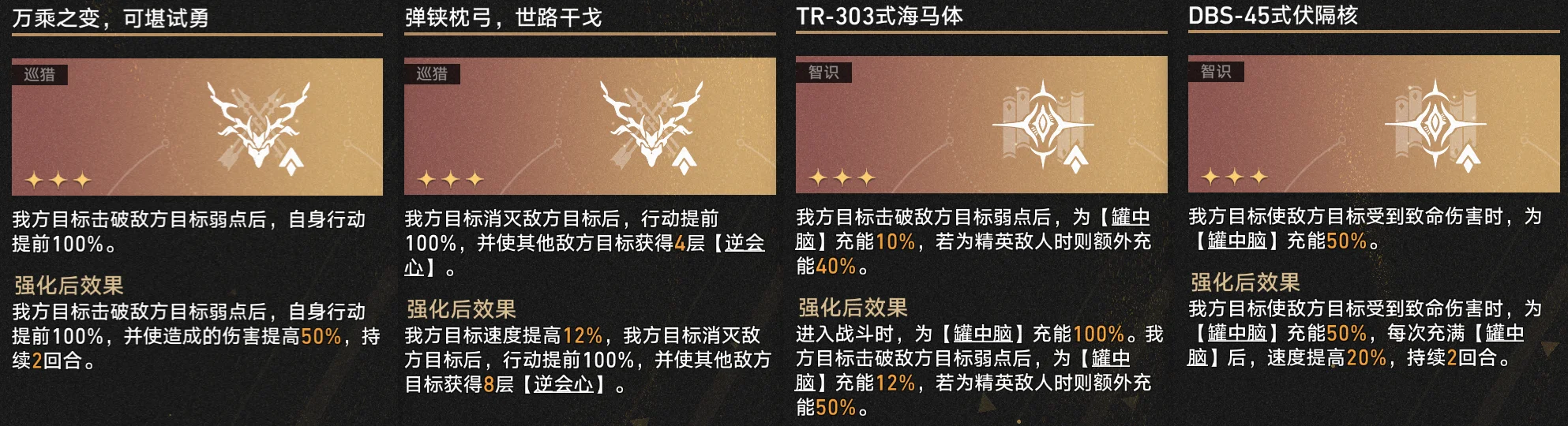 所有流派都通用的击破/击杀 再动/罐中脑也别忘了带 —— 特别是击破获取增伤和罐中脑的祝福建议优先升级。