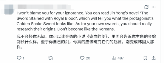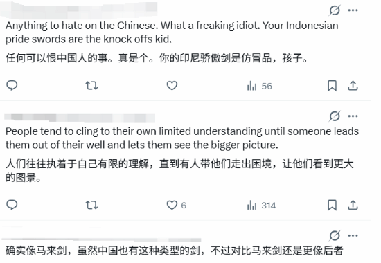 其他玩家纷纷坐不住了,表示中国自古以来就有这种造型的武器,还有小说中的金蛇剑、丈八蛇矛等,中国建立帝国时印尼还是原始部落。