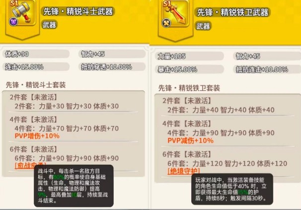 装备:前期力量/体质套,后期斗士/铁卫套装