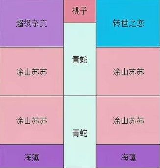 2.联动为主C:摆法最下方一格,转世之恋/涂山苏苏均可;理论转世之恋伤害更高,但实战换苏苏,可第一时间攻击对面怪物刷新处的目标。