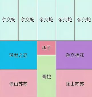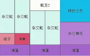 超杂为主C:按图内摆法上阵(青蛇/杂交蛇可根据情况调动,海藻可换一个紫薯+20易伤)。