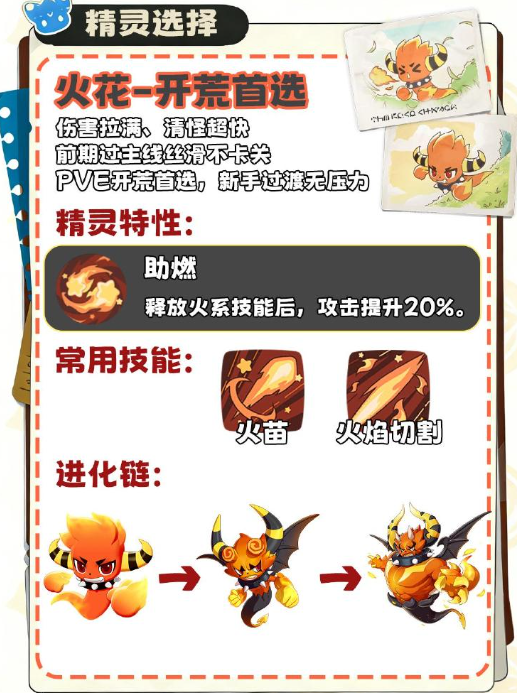 高爆发输出,前期克制大量草系精灵,清图效率极高,被动增伤机制优秀 。 追求效率的PVE开荒党、新手首选。