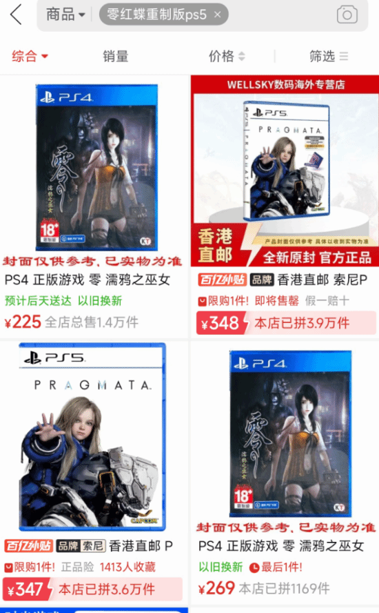 据玩家反馈,拼多多等电商平台已在一夜之间下架了《零:红蝶 重制版》相关商品,不过目前仍有部分渠道可买到现货。商家表示,已有部分平台完成下架禁售,后续全平台封禁将全面落地。