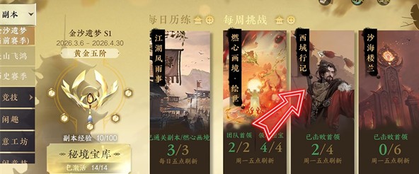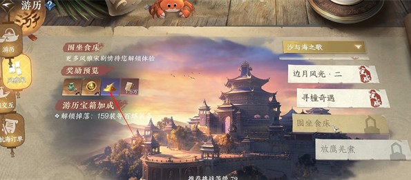 6、最后一个就是在游历的风雅宋中,完成对应任务就可以领取一个砂海浮金