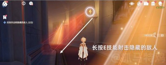 一直前进到全部都是红灯的新区域第三处隐藏敌人灯会频繁闪烁,长按E技能射击这个与众不同的灯。