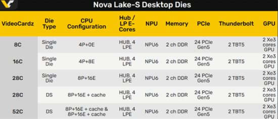 整个系列目前规划了13款SKU,完整覆盖酷睿Ultra 3/5/7/9四大系列,不仅重启了Arrow Lake缺席的酷睿Ultra 3入门型号,最高端的52核、44核型号,更是大概率让停更多年的酷睿X发烧级平台重出江湖。