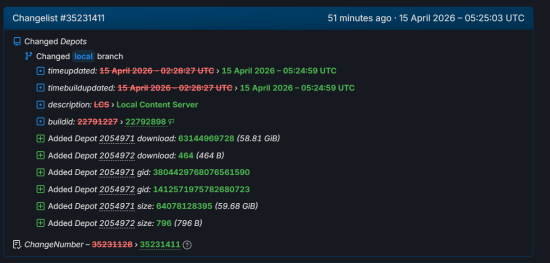 SteamDB数据显示,游戏先推送77GB巨型更新后又完整移除,随后再上传59.68GB全新测试资源包,这一反复操作,引发玩家对大型DLC的疯狂猜测。