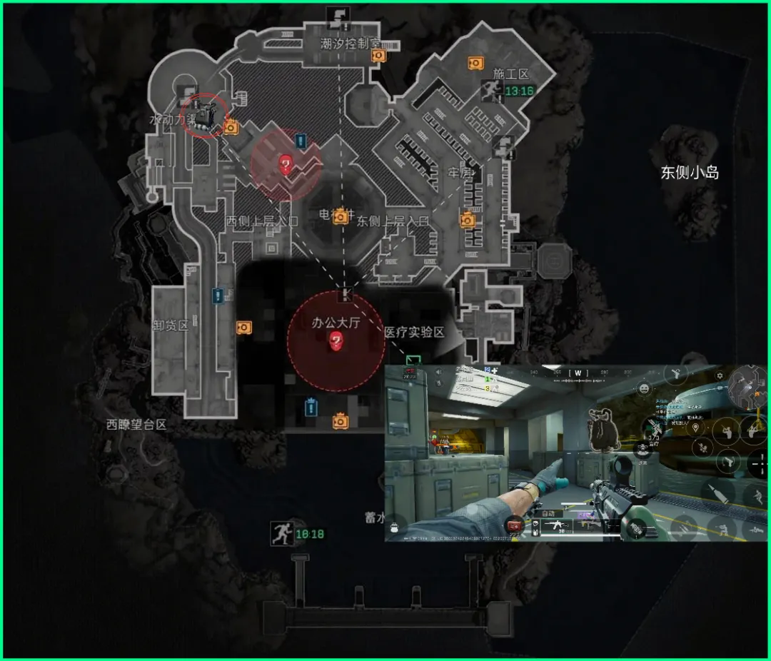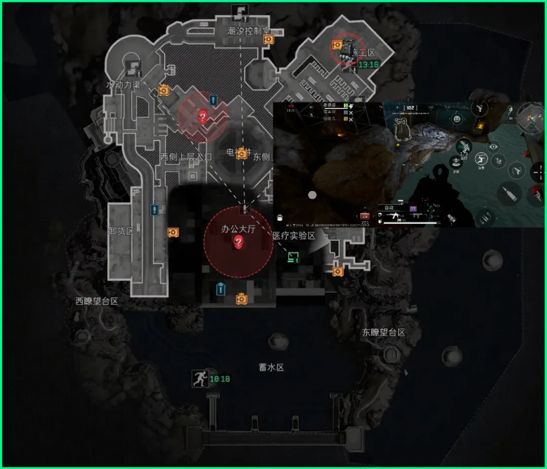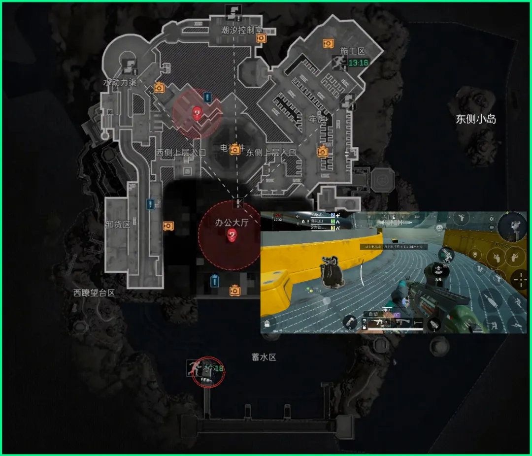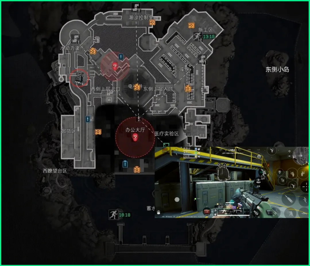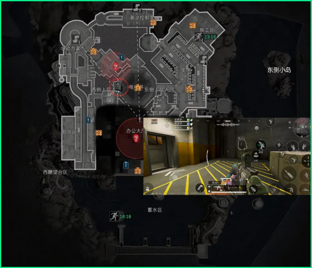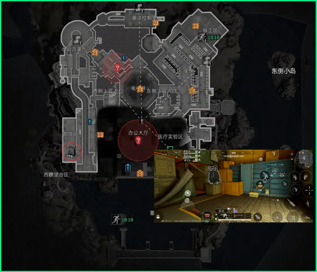 第6个刷新点在施工区,这里是丢包撤离点的上岸点,可以通过牢房区域进入,也可以通过地图最右上方的山洞进入!也是链接室内外的双向通道。具体位置参考图片即可~