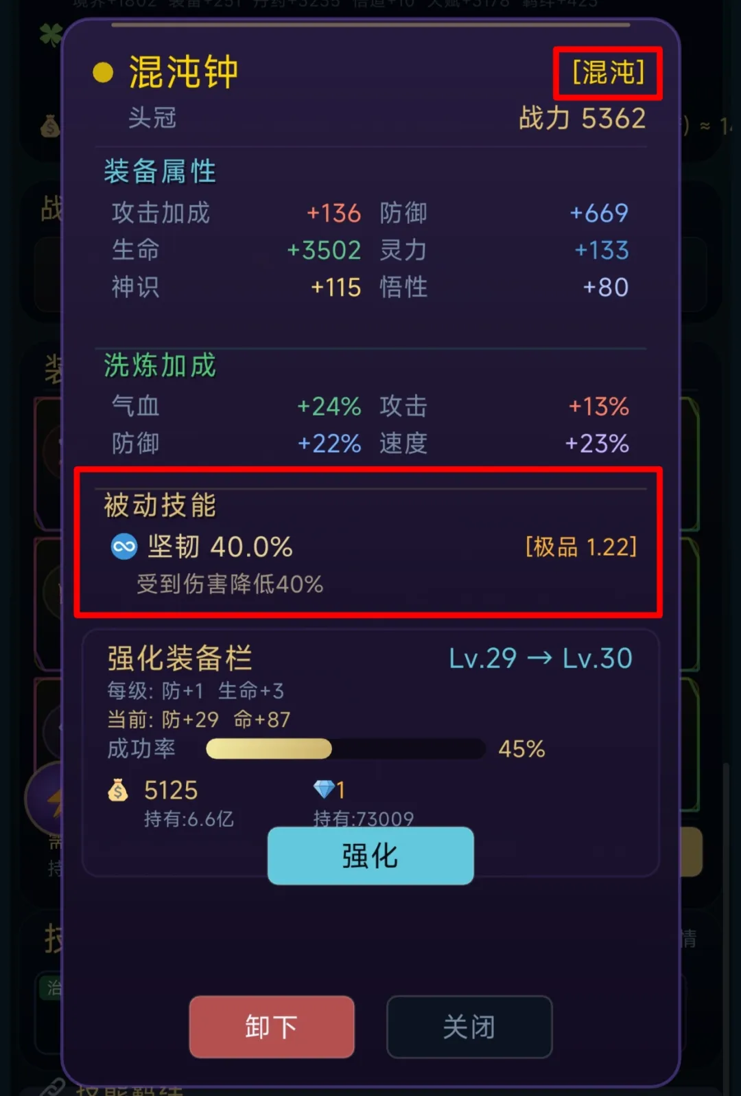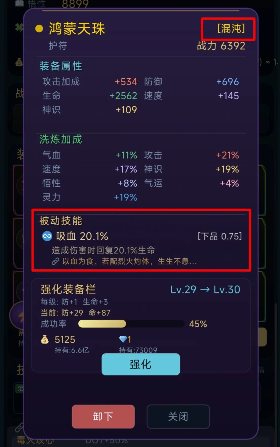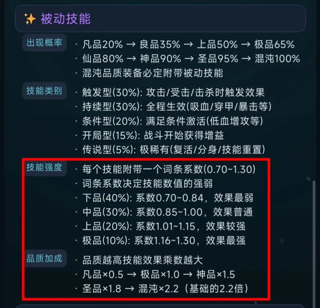 注: 优先选择高品质装备,技能品级越高,触发概率越大。