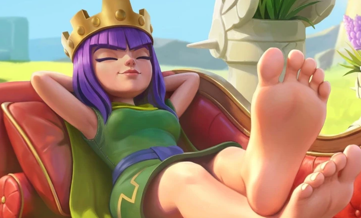 最近《部落冲突》整了个大活,上线一个“足部贡品”(Foot Tribute Bundle)的限时装饰包。官方还配了一张弓箭女王光着脚丫子慵懒躺靠的立绘,文案更是:“精致细节,赤足且不加掩饰的皇室气场。献给真正有修养之人的颓废嗜好。”