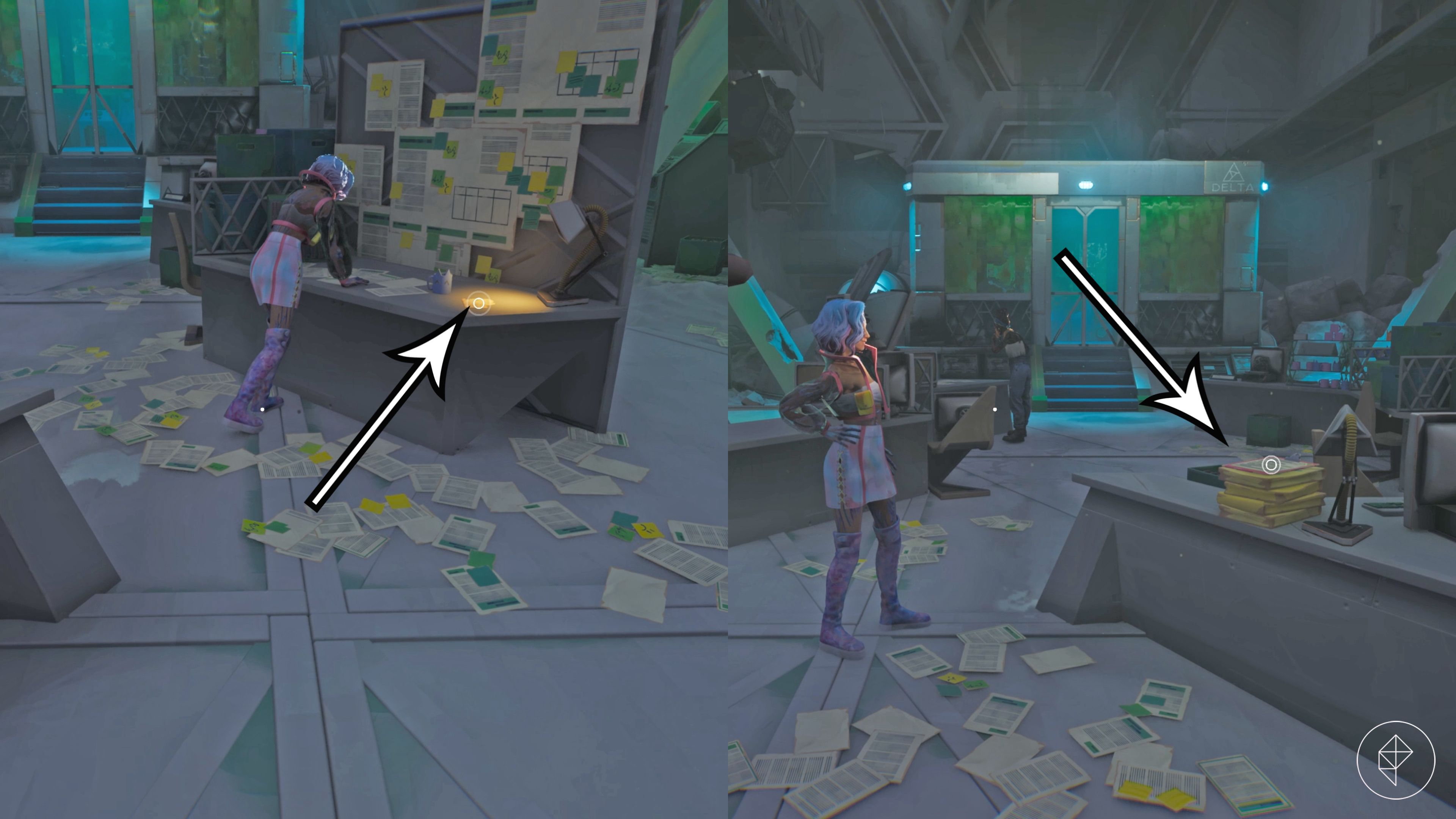 第一个任务目标是检查 Eyla 找到的文件,它就在她旁边的桌子上。接下来,你必须找到操作规程。等待 Eyla 走到下一张桌子旁,阅读她面前的文件。