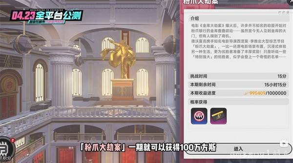 粉爪大劫案一期就可以获得100万方斯,再加上积分奖励,挑战目标和图鉴奖励可以在前期获取大量方斯帮助大家快速提升等级。