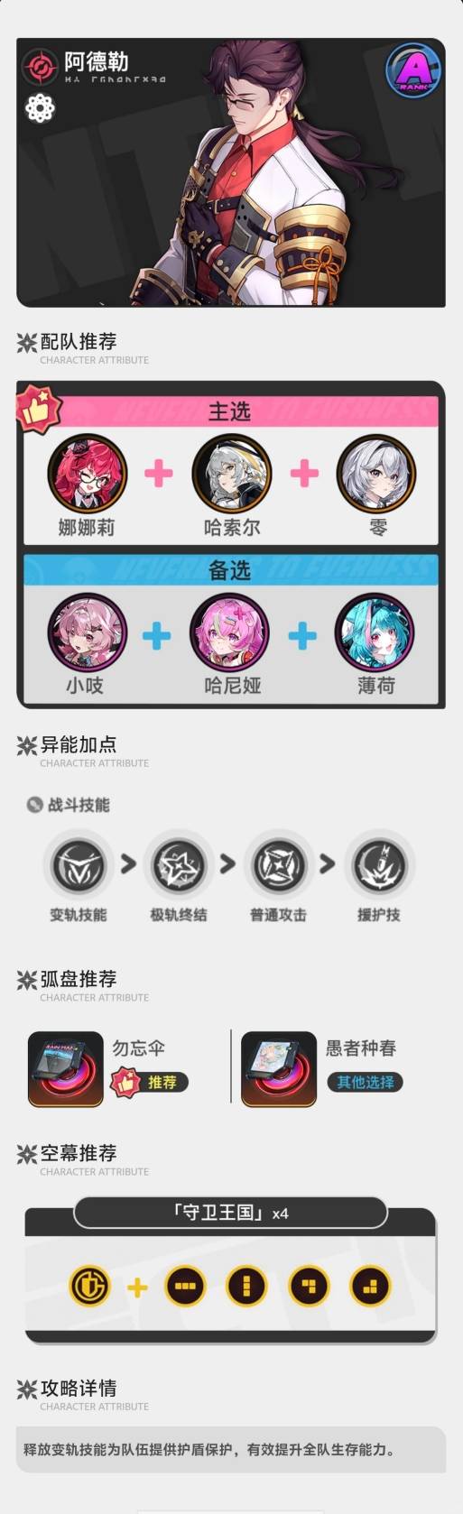 生存系培养来喽!《异环》中的阿德勒隶属于伊波恩古董店阵营,担任管家一职,定位为可为队伍提供生存保障的辅助型角色。这边针对该角色的养成路径进行了梳理,内容涵盖武器与驱动盘等装备的选取倾向,以及适配队友的组合方案。下文将该角色的核心培养要点以图文形式进行汇总。