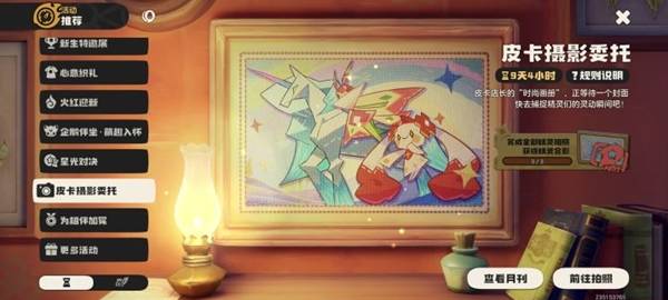 皮卡的店里就可以拍,二楼有每期精灵的印象,是可以被相机识别的,把自己抓的宠物扔出来拍也行。