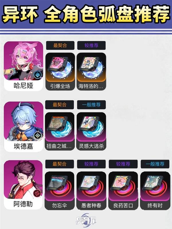全部整理收录!《异环》公测版本共收录九名S级角色与五名A级角色,各角色因定位与技能机制的差异,在弧盘搭配上存在不同的最优解。这边对当前版本全角色的弧盘选取进行了系统整理,涵盖输出、生存及辅助等不同定位的适配方案。下文为该攻略的要点汇总。