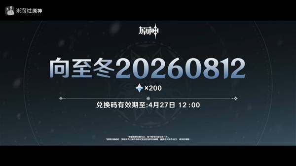 至冬国内容前瞻直播放出兑换口令,输入即领200原石