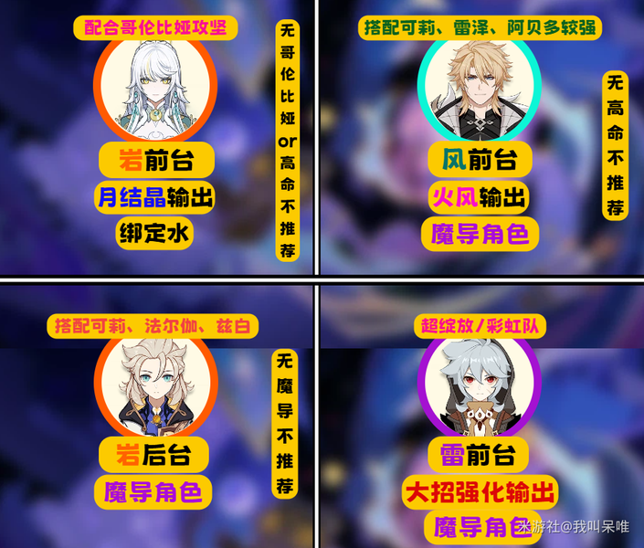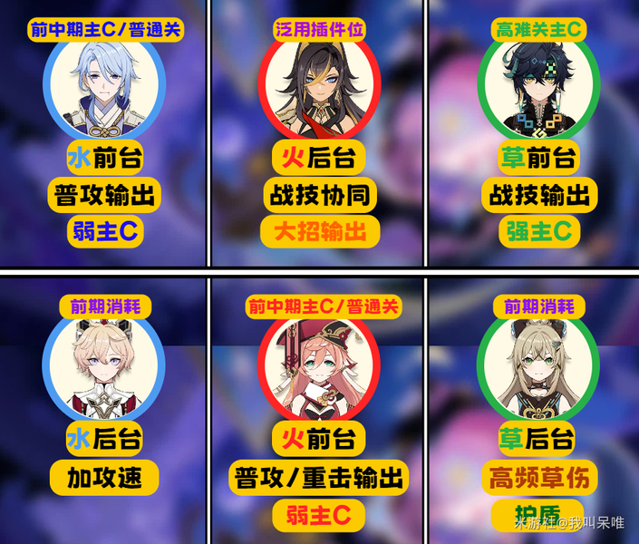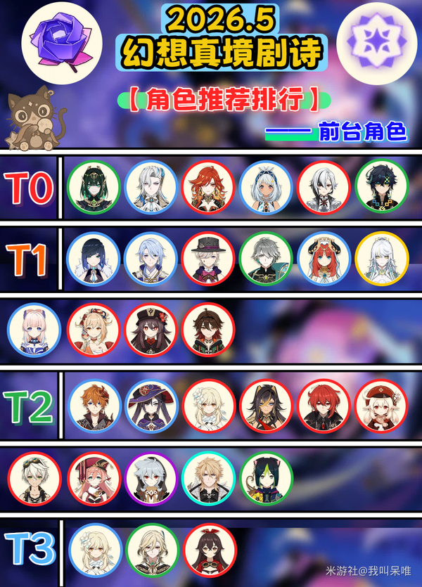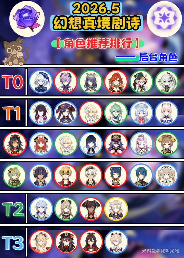 T0:泛用性,辅助能力,挂元素能力中有2项以上非常优秀的角色。