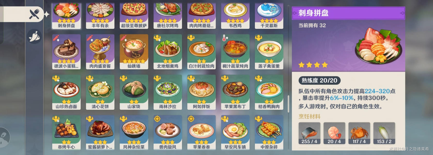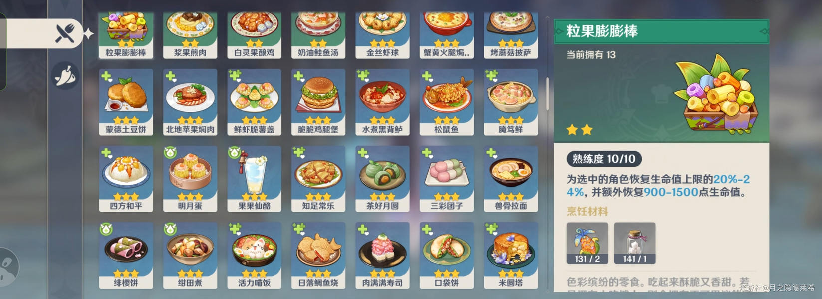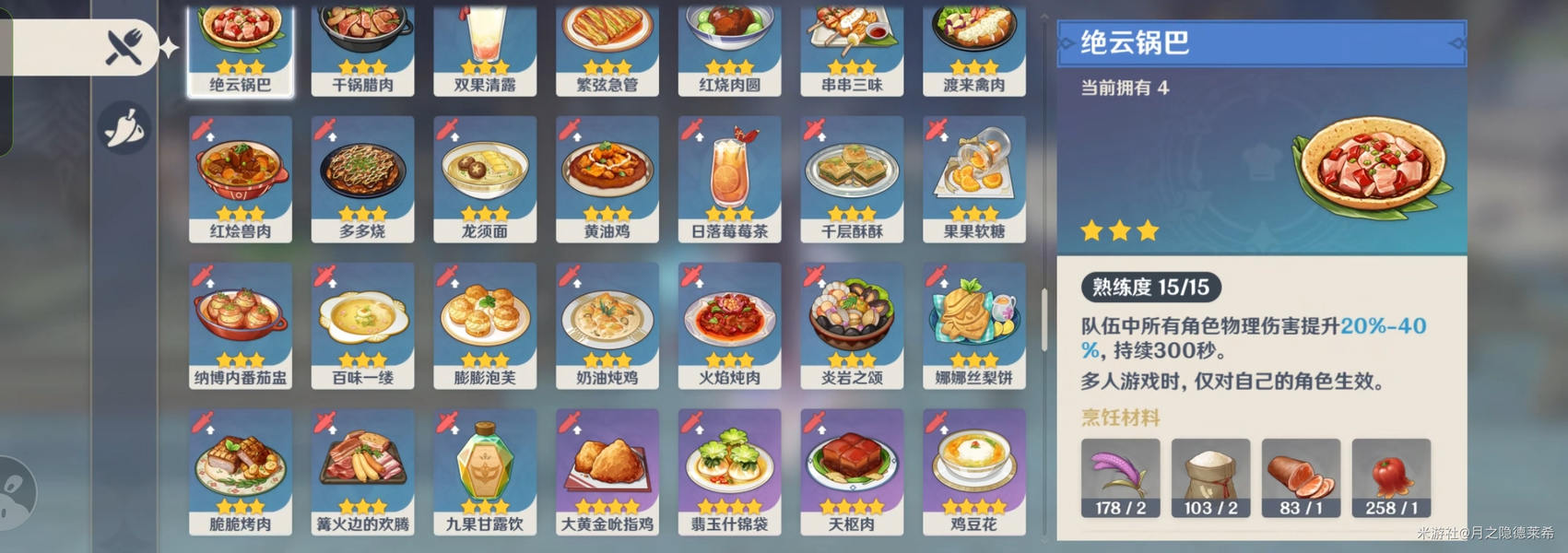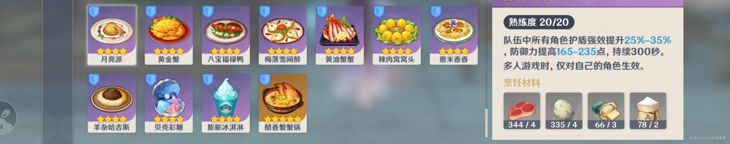 月之六版本烹饪图鉴汇总,263道料理及食材处理方式整理