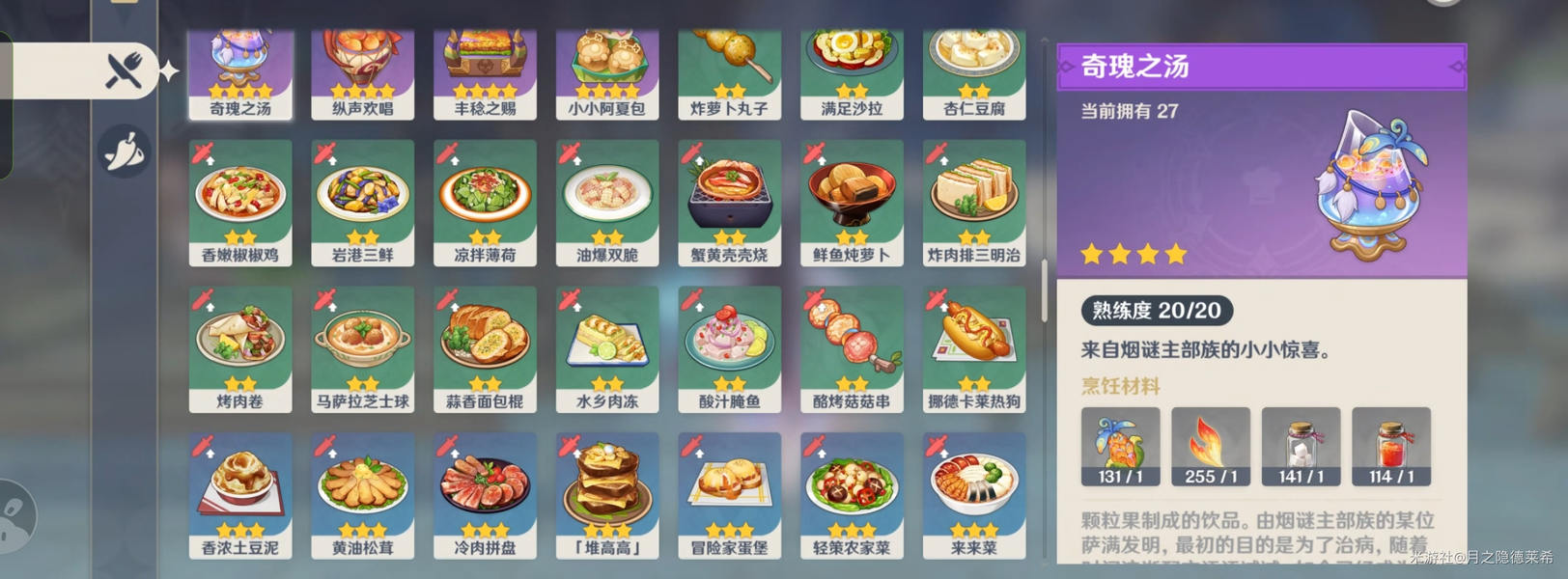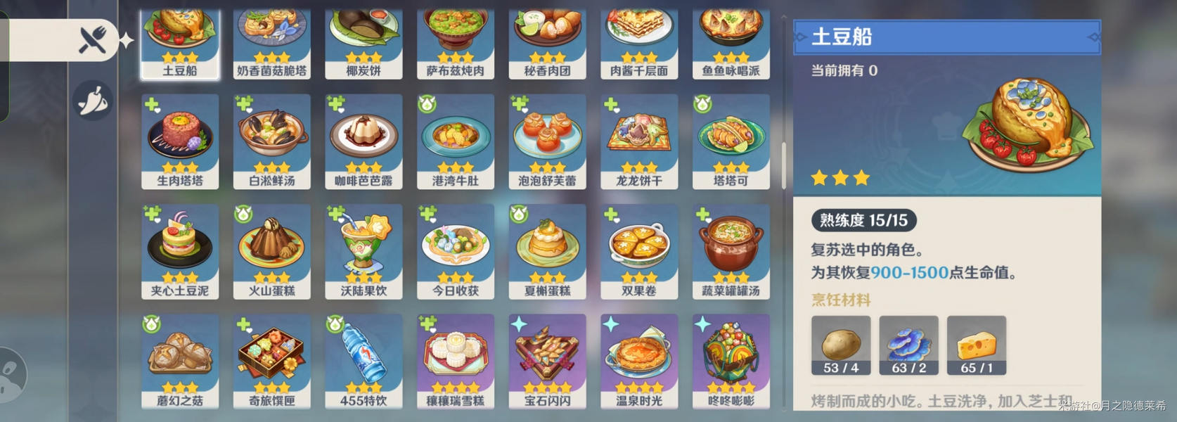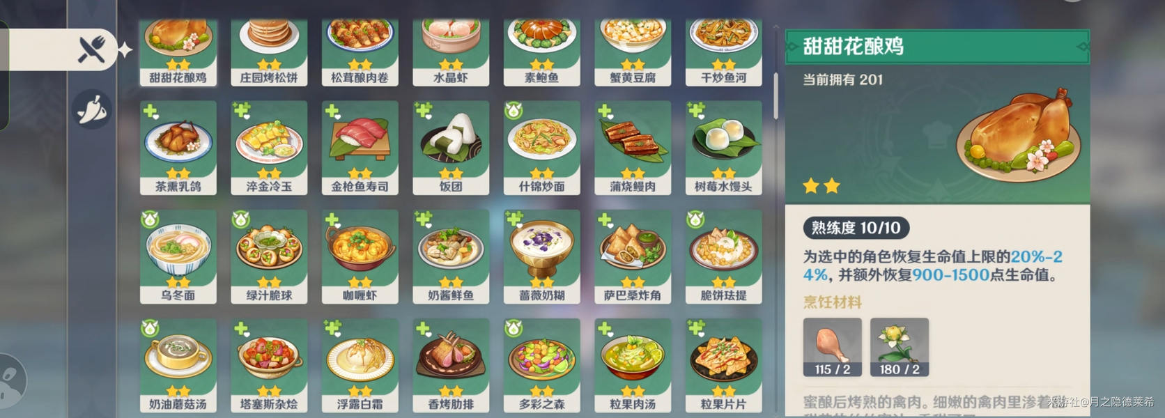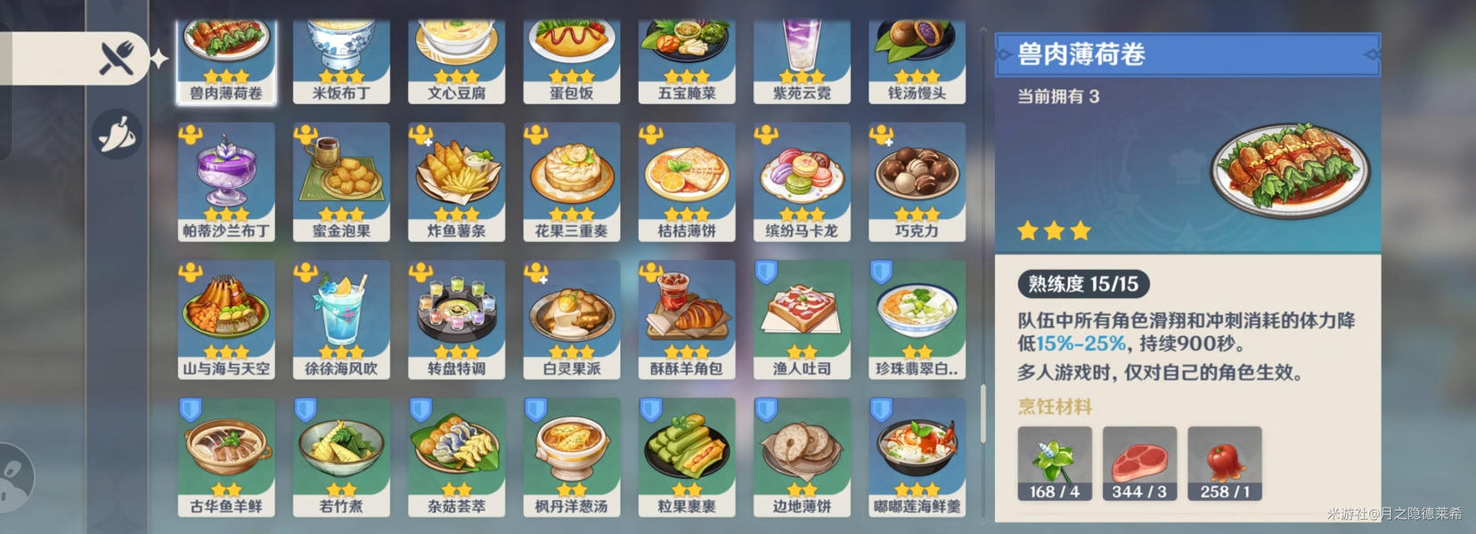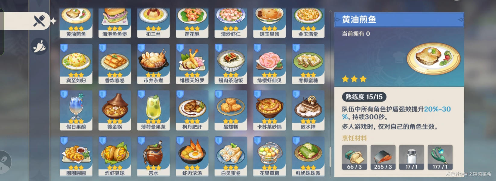月之六版本烹饪图鉴汇总,263道料理及食材处理方式整理